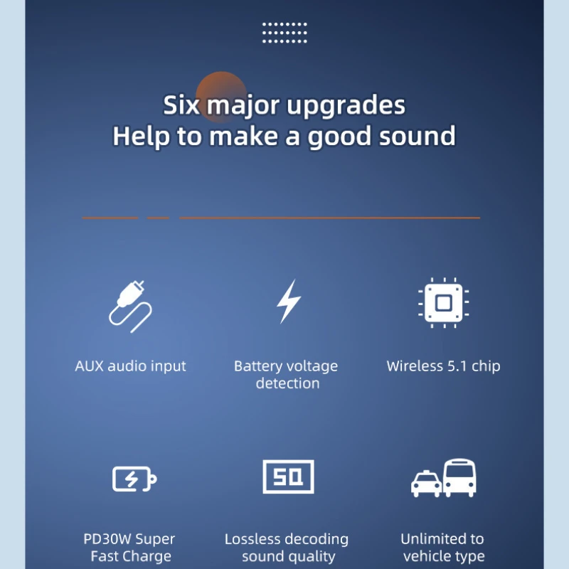 • 🔌 Double port USB + entrée AUX 3,5 mm : Connectez et rechargez deux appareils en même temps.